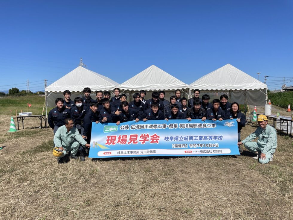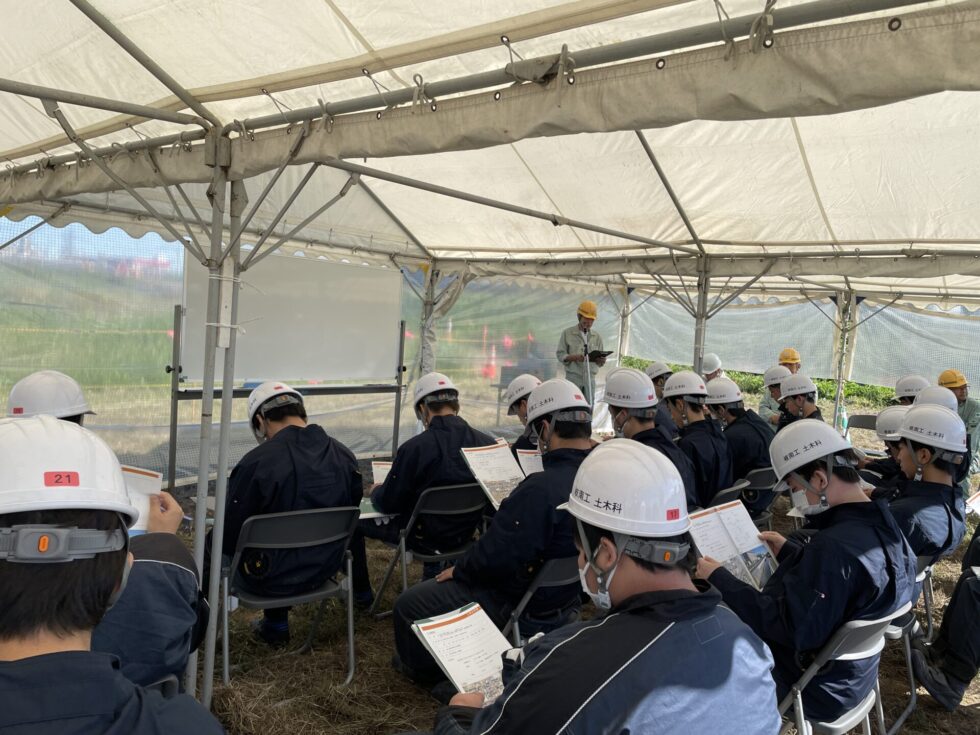 令和7年10月9日に岐南工業高等学校の土木工学科2年生を招いて現場見学会開催しました。今月2回目の見学会です。