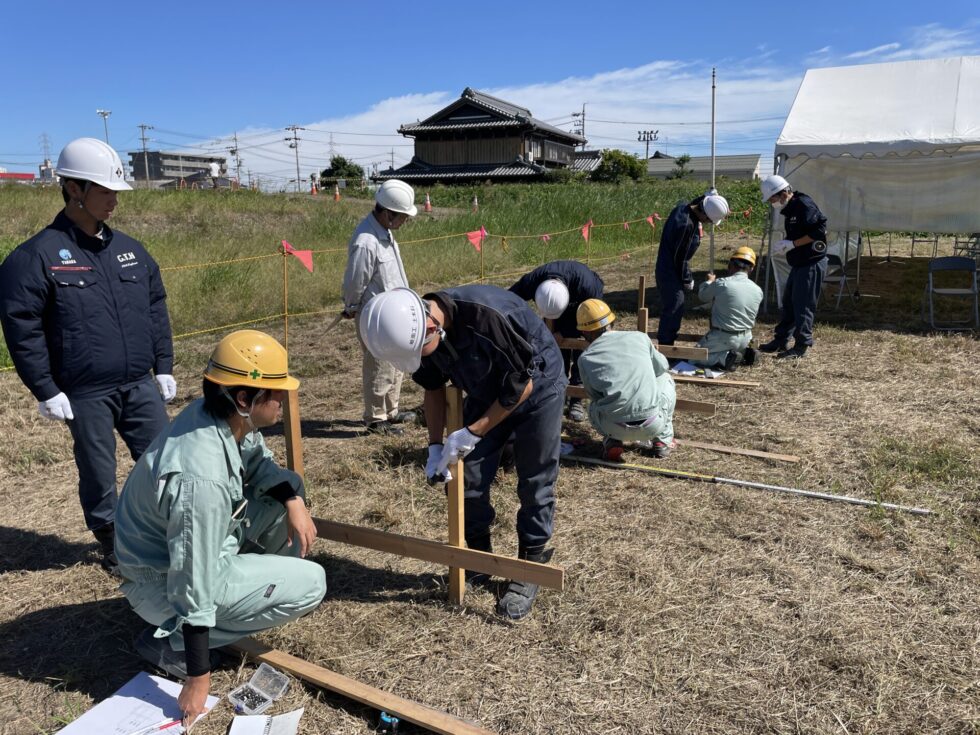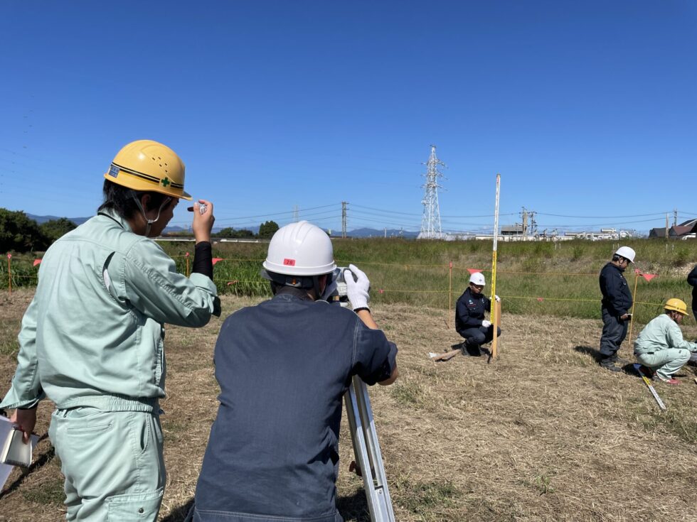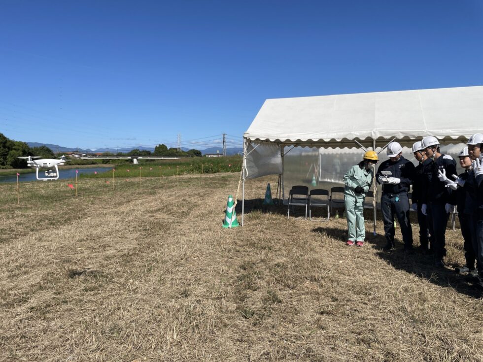その後は丁張設置やドローン操作、トータルステーションによる測量体験等、実際行っている施工管理の仕事を体験してもらいました。