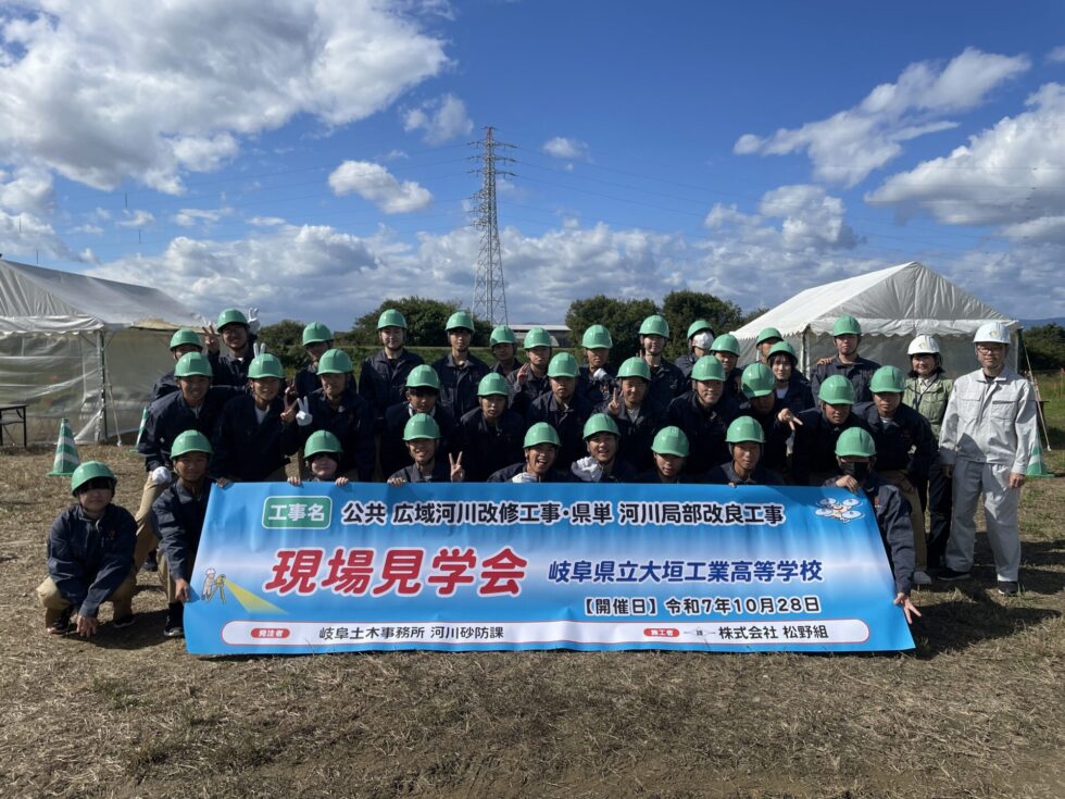 令和7年10月28日に大垣工業高等学校の土木・建築工科学科2年生を招いて、現場見学会開催しました。今月4回目で今年最後の見学会です。